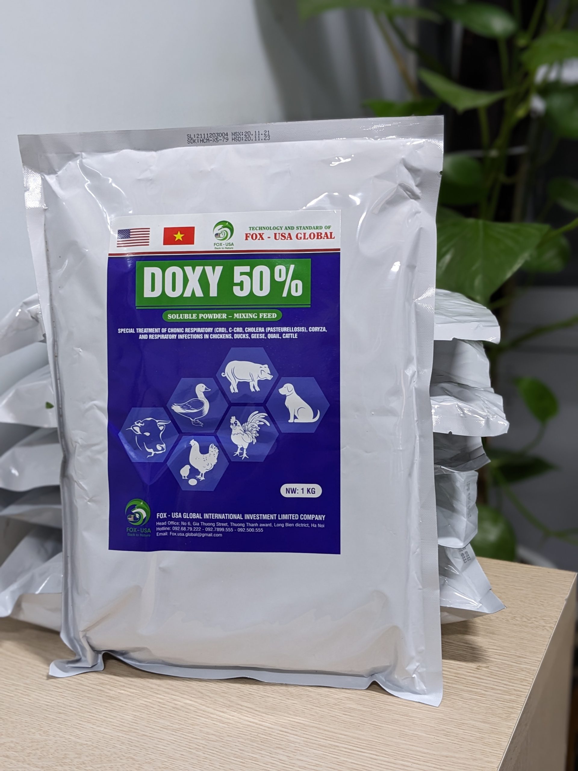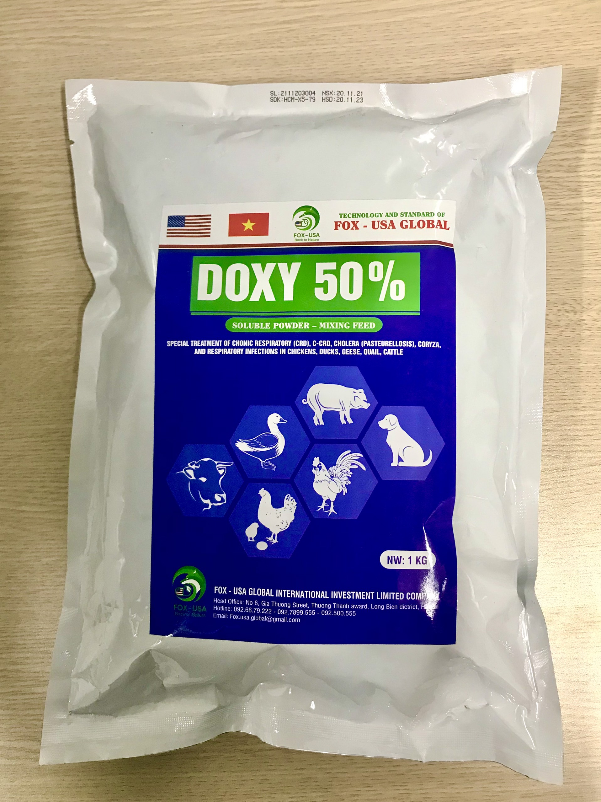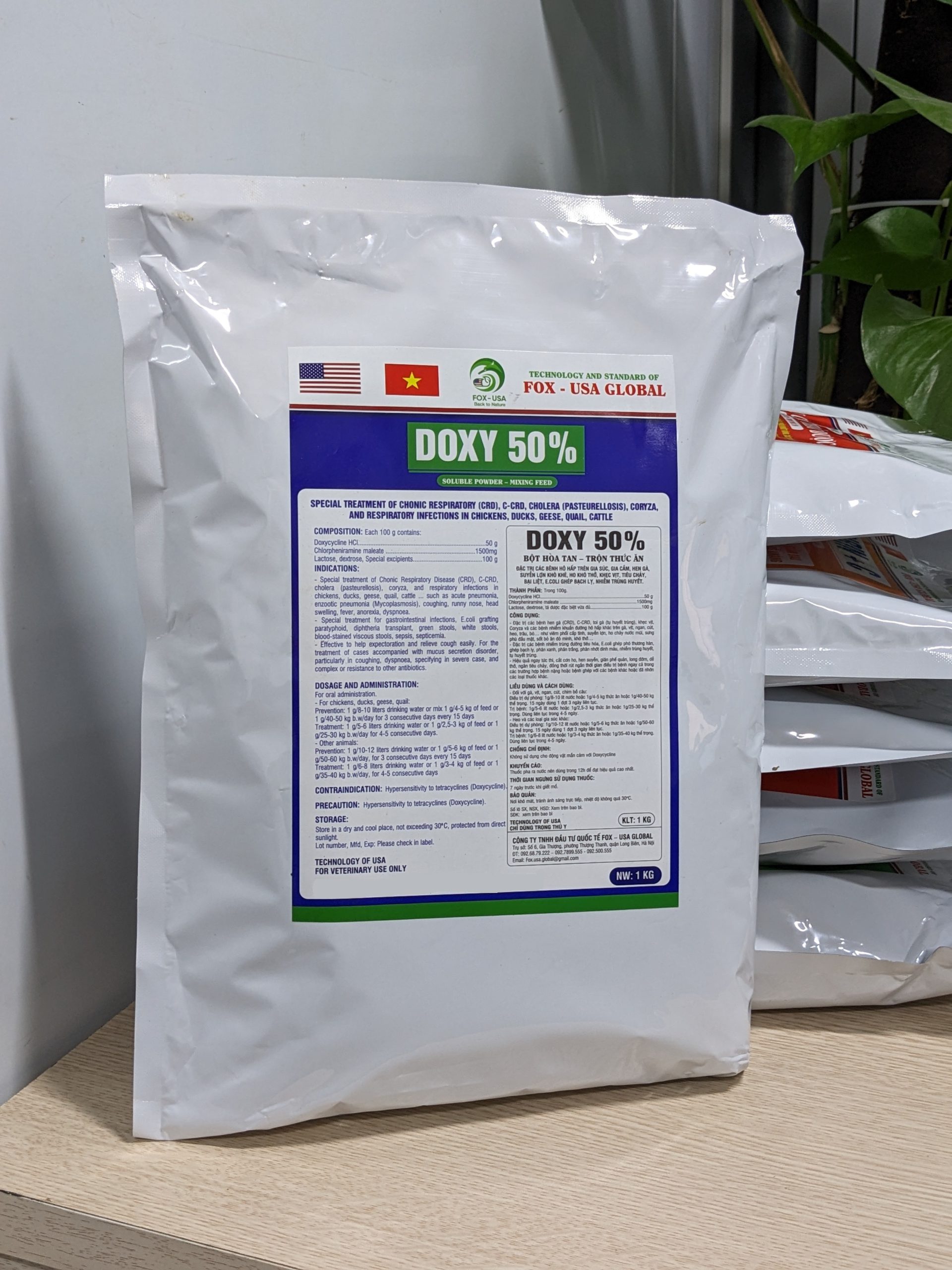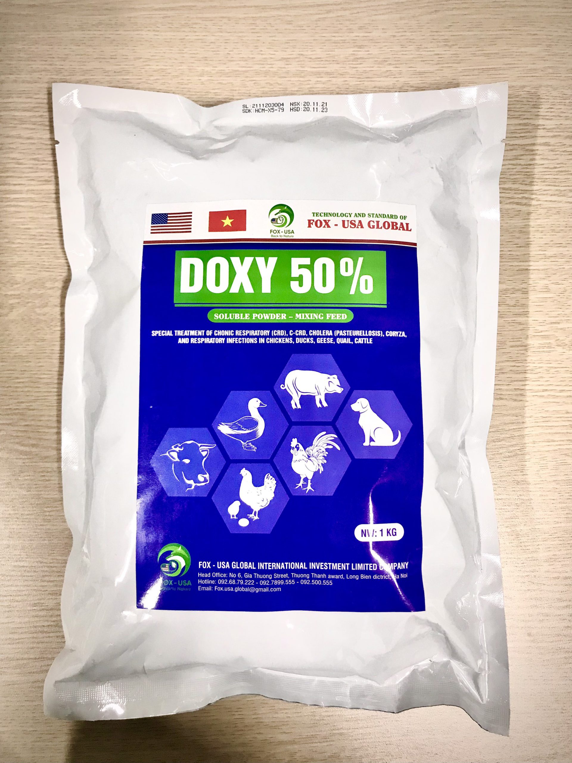 Doxycycline HCl, Tá dược đặc biệt(Bromhexin, Prednisolon) vừa đủ 1kg