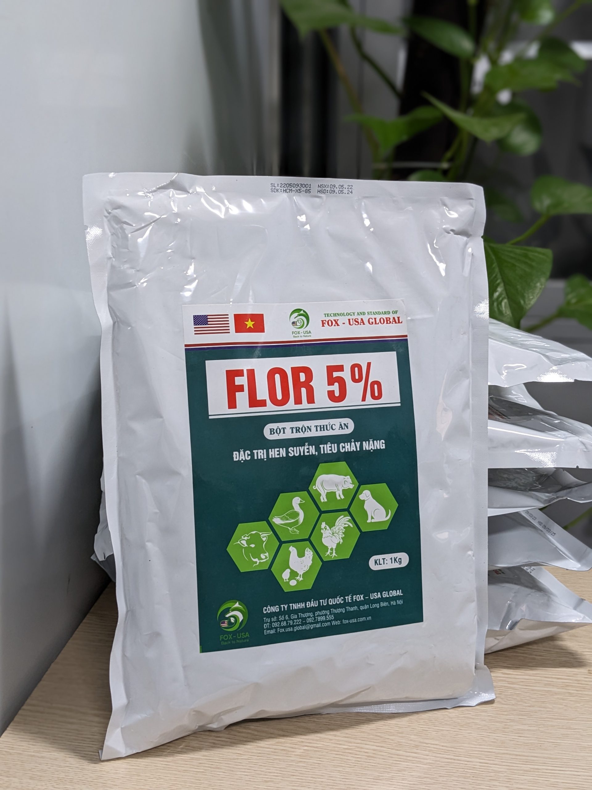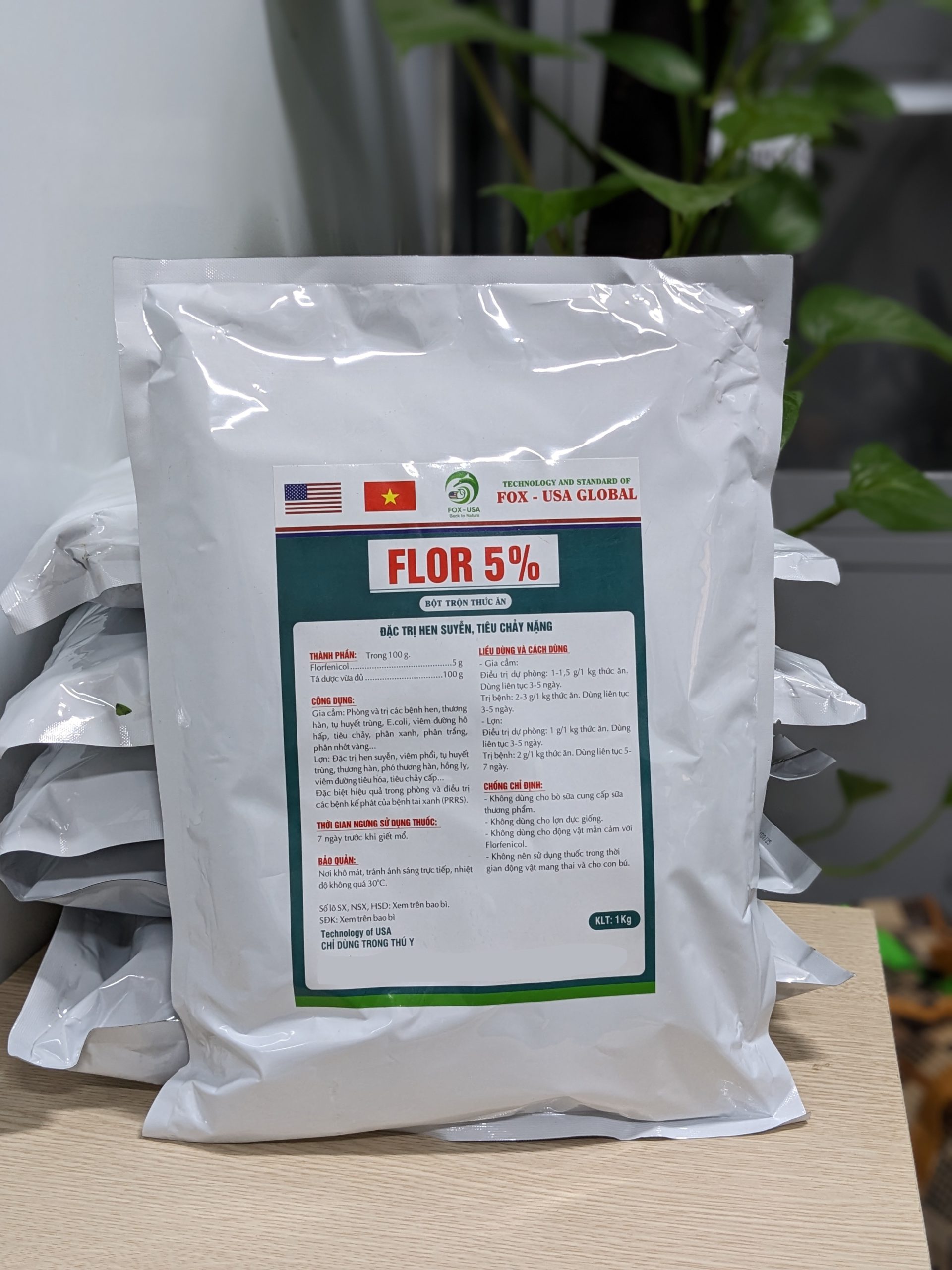 Florfenicol, Lactose, dextrose và tá dược đặc biệt vừa đủ 1kg