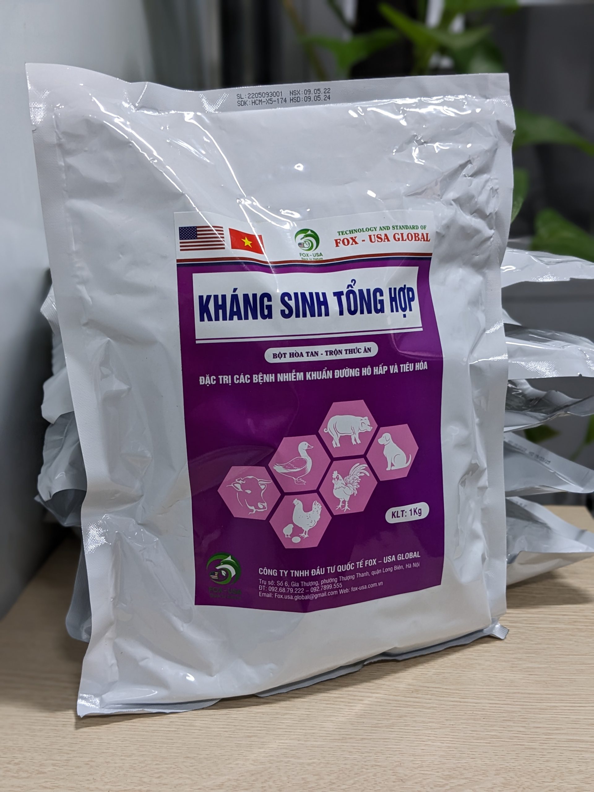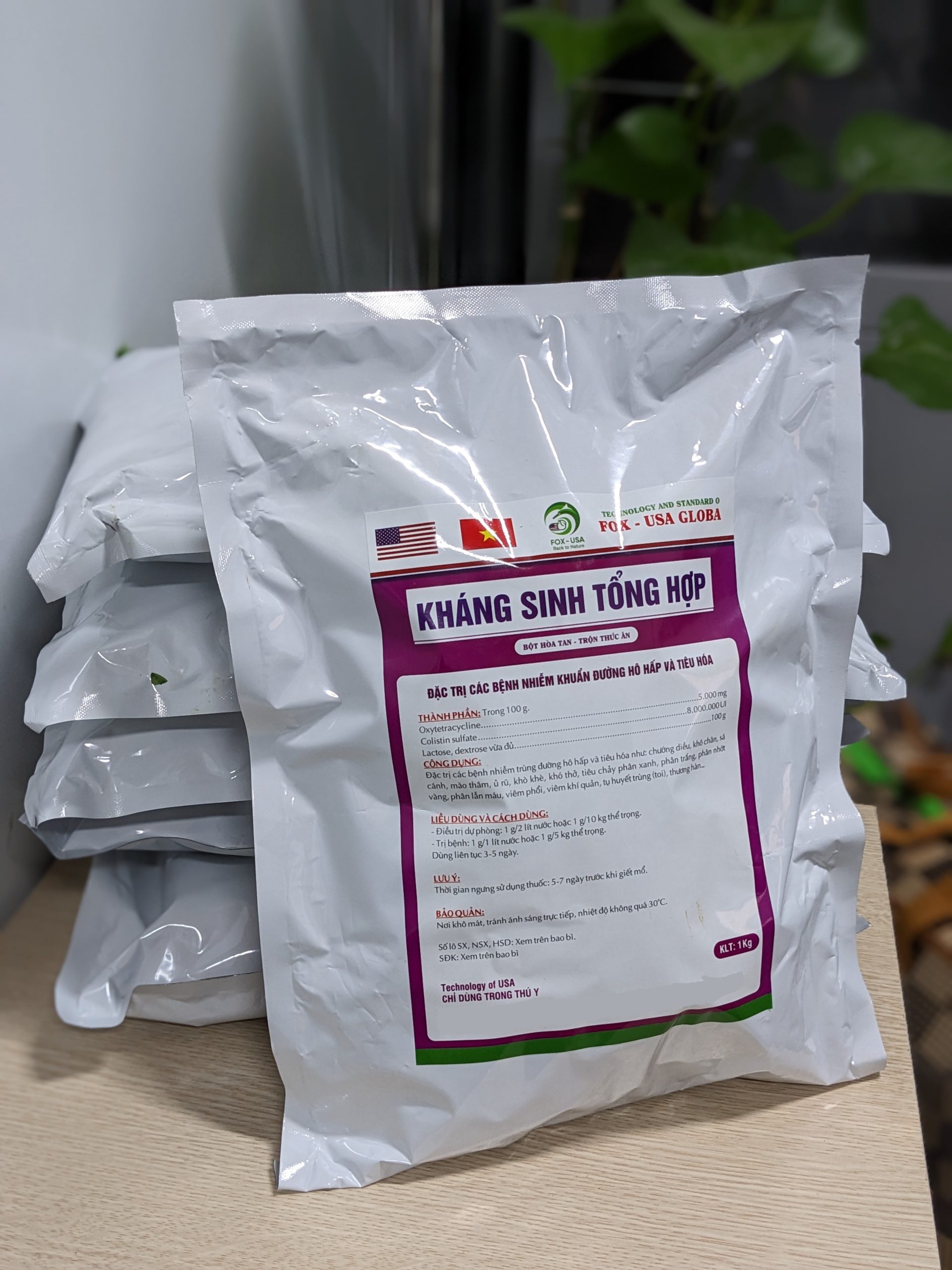 Colistin Sulfate, Oxytetracycline HCL, Lactose, dextrose và tá dược đặc biệt vừa đủ 1kg