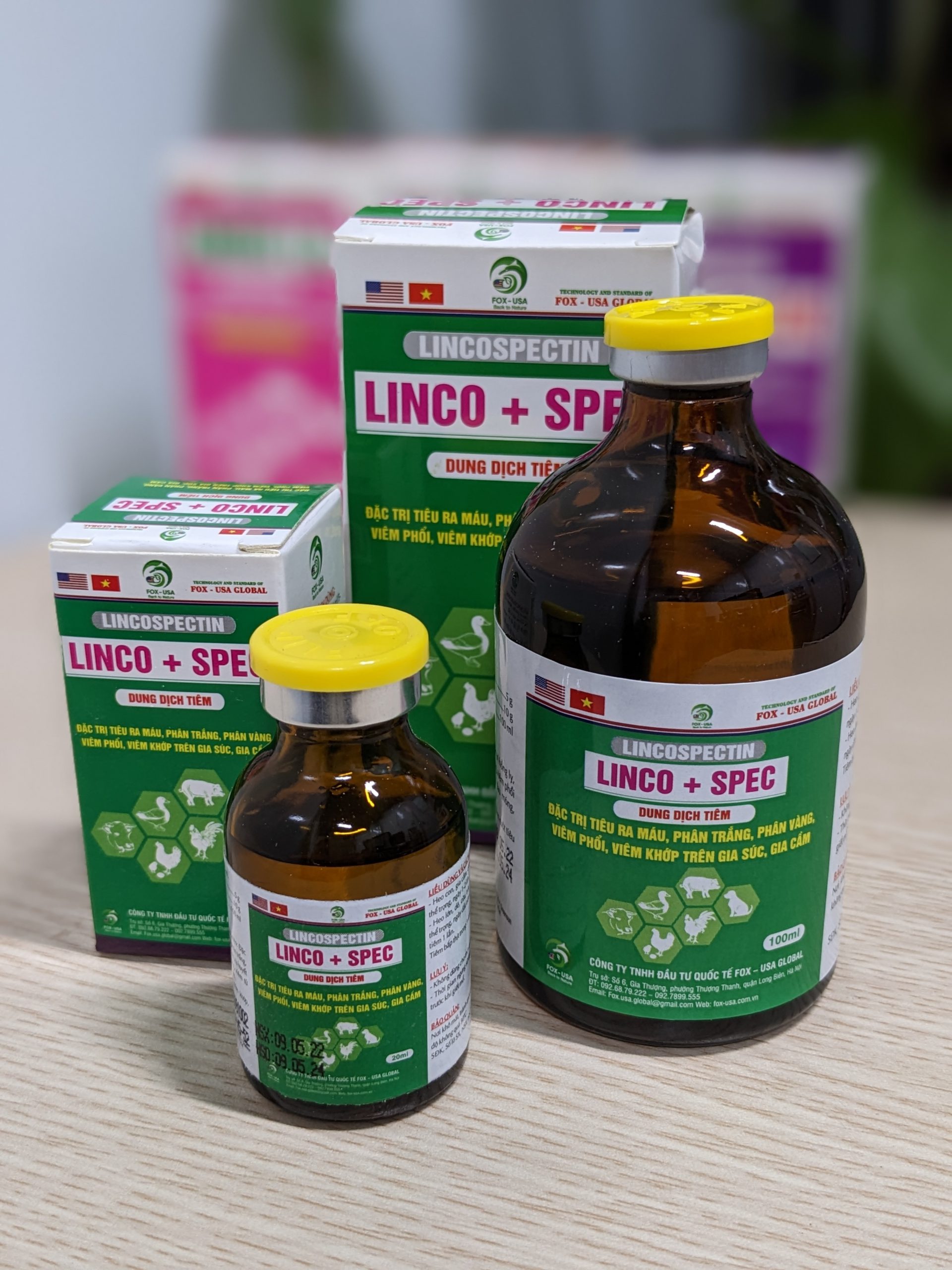 Spectinomycine base, Lincomycinebase, Dung môi và tá dược đặc biệt vừa đủ 100ml hoặc 20ml